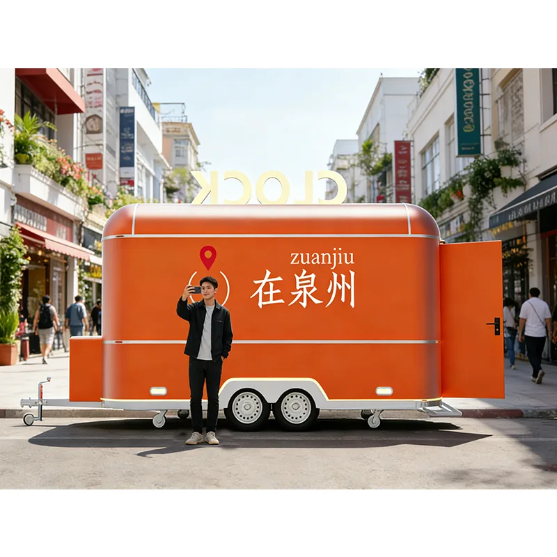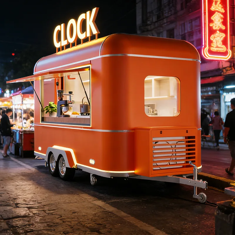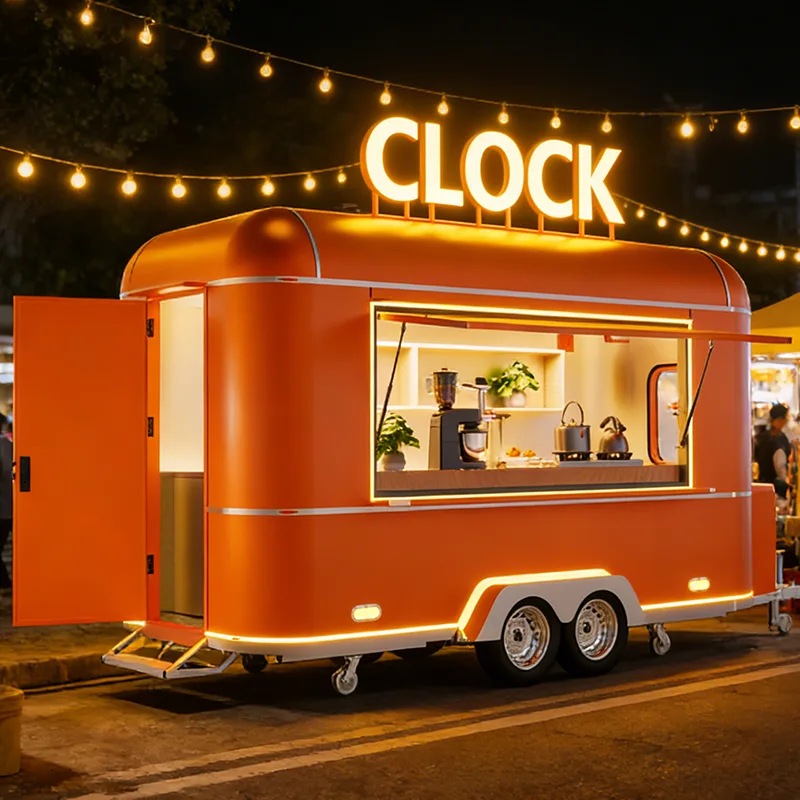 Το Concession Trailer χρησιμοποιεί πλαίσιο βαρέως τύπου από χάλυβα, εξοπλισμένο με ενισχυμένο μηχανισμό ρυμούλκησης και σύστημα ανάρτησης υψηλής σταθερότητας, το οποίο μπορεί εύκολα να ρυμουλκηθεί από φορτηγά και ελαφρά φορτηγά. Προσαρμόζεται στις συνθήκες του δρόμου, όπως μονοπάτια γραφικών περιοχών, περιβάλλοντα σταδίων και εκθεσιακά πάρκα. Η ανάπτυξη είναι αποτελεσματική και ανθεκτική. Το κύριο σώμα χρησιμοποιεί μόνωση ποιότητας τροφίμων και ανθεκτικά στη διάβρωση σύνθετα πάνελ τα οποία έχουν υποστεί επεξεργασία με προστασία σκουριάς σε όλους τους τομείς και στεγανοποιημένη στεγανοποίηση για να αντιστέκονται στις διαφορές εξωτερικής θερμοκρασίας και στις έντονες καιρικές συνθήκες. Η εμφάνιση υποστηρίζει προσαρμογή επωνυμίας πλήρους διάστασης, μπορεί να αναπαράγει με ακρίβεια το σύστημα της μάρκας franchise και συνδυάζεται με ενσωματωμένο λαμπερό ΛΟΓΟΤΥΠΟ, προσαρμοσμένη βαφή και πτυσσόμενο σκίαστρο για να ενισχύσει την αναγνώριση της επωνυμίας και να βοηθήσει την εικόνα της μάρκας να βγαίνει με συνέπεια. Το εσωτερικό είναι κατασκευασμένο από ανοξείδωτο χάλυβα 304, με αντιολισθητικούς και ανθεκτικούς στο λάδι πάγκους, τοίχους και δάπεδα, που καθαρίζονται εύκολα και πληρούν πλήρως τις απαιτήσεις συμμόρφωσης των λειτουργιών franchise.